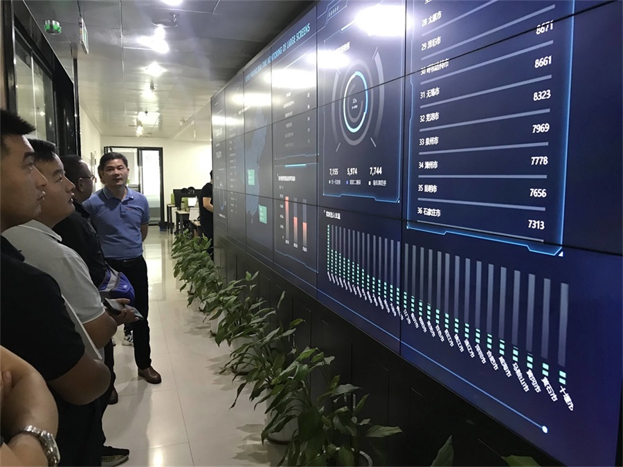- 招商負(fù)責(zé)人進東總帶領(lǐng)一行人參觀建筑面積5000+平方米的科拓總部。速停車全國車場數(shù)據(jù)顯示屏,實時跳動的可視化數(shù)據(jù)為大家?guī)碚鸷车捏w驗。