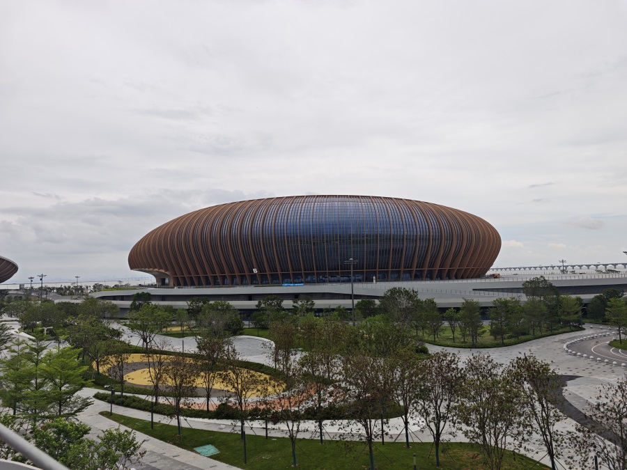 - 大灣區(qū)文化體育中心,巍然屹立于粵港澳大灣區(qū)的幾何中心——廣州市南沙區(qū)萬頃沙鎮(zhèn)。項(xiàng)目坐擁甲級綜合體育場(6萬座)、多功能體育館(2萬座)及游泳跳水館(四千座),是一個(gè)能夠承接國際頂級賽事與大型文化演藝活動(dòng)的現(xiàn)代化綜合場館群。
