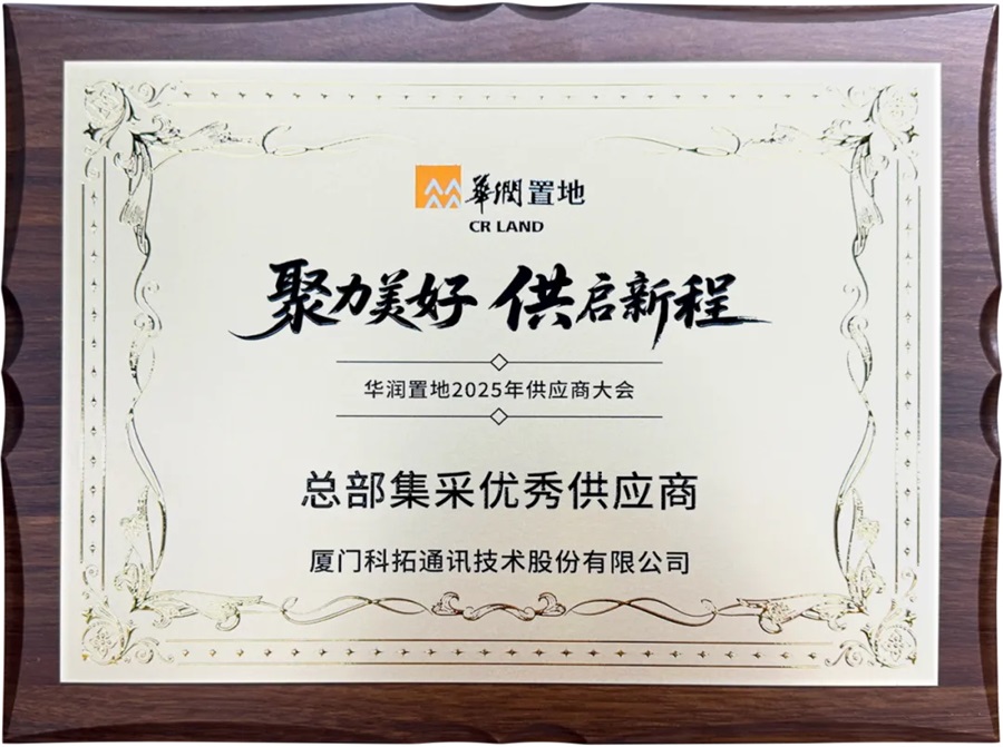 - 2025年,科拓股份憑借扎實(shí)的技術(shù)實(shí)力、可靠的服務(wù)體系與良好的市場(chǎng)口碑,成功獲評(píng)華潤(rùn)置地“總部集采優(yōu)秀供應(yīng)商”。這一榮譽(yù)不僅是華潤(rùn)置地對(duì)科拓綜合能力的高度認(rèn)可,也充分體現(xiàn)了頭部客戶對(duì)科拓長(zhǎng)期合作潛力的深度信任。